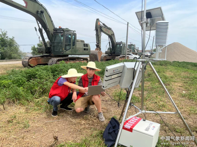 2024年7月5日,岳阳市华容县团洲垸决堤,市、县气象局在决堤口附近架设便携式气象站,做好现场抢险保障服务。周诗柔 摄影